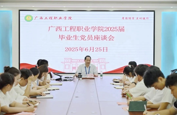 2025年6月25日上午,學(xué)校黨委在圖書館大數(shù)據(jù)中心召開2025屆畢業(yè)生黨員座談會,學(xué)校黨委書記、政府督導(dǎo)專員蒙本曼,黨委辦公室全體成員,各支部書記、副書記及畢業(yè)生黨員代表共80余人參會,會議由黨委辦公室負(fù)責(zé)人蒙文怡主持。