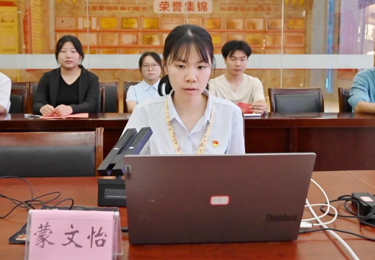 圖為學(xué)校黨委辦公室負(fù)責(zé)人蒙文怡布置2025屆畢業(yè)生黨員黨組織關(guān)系轉(zhuǎn)移工作