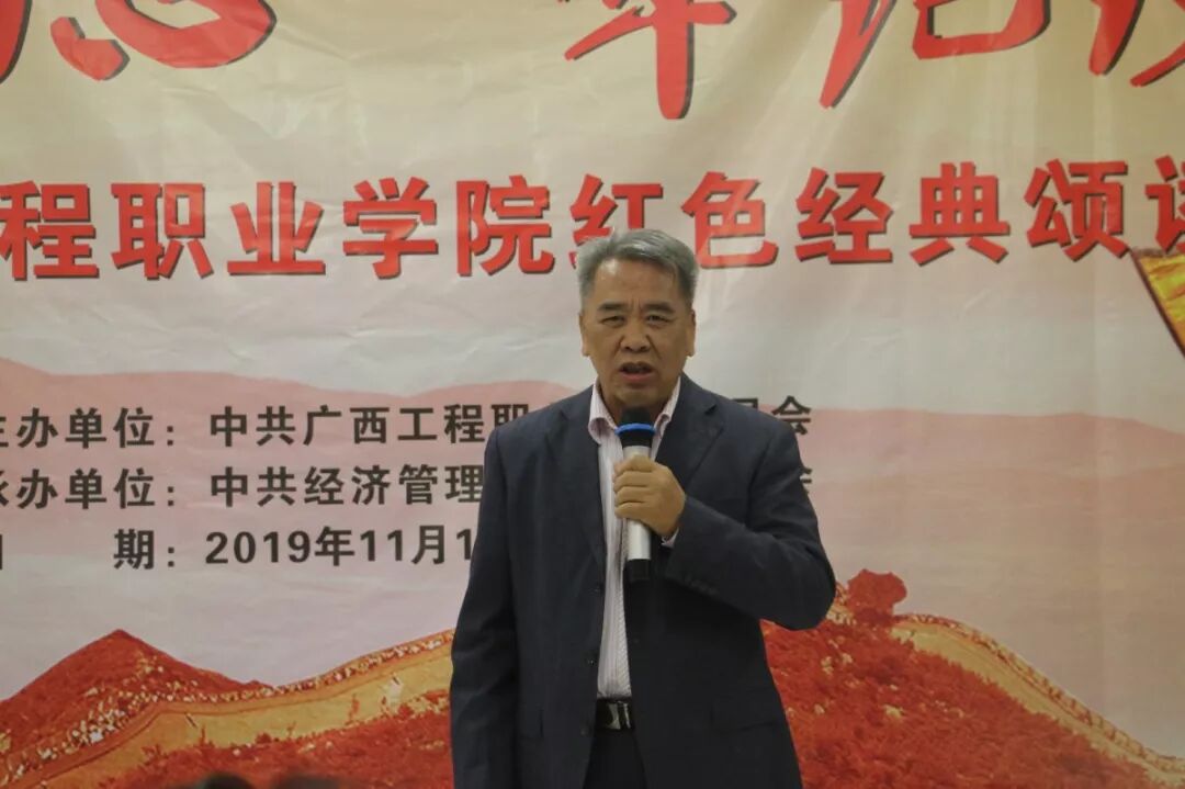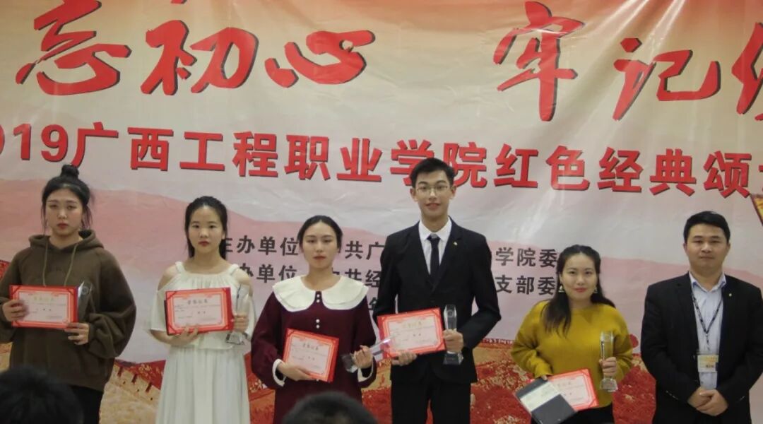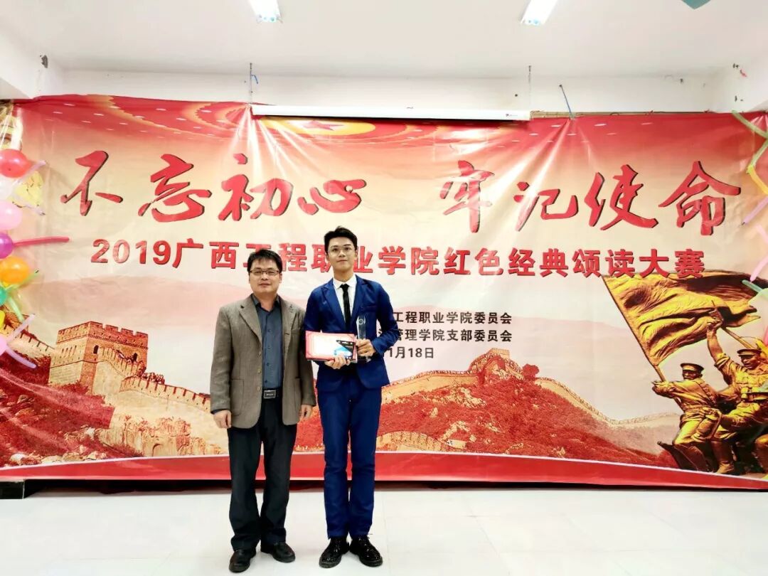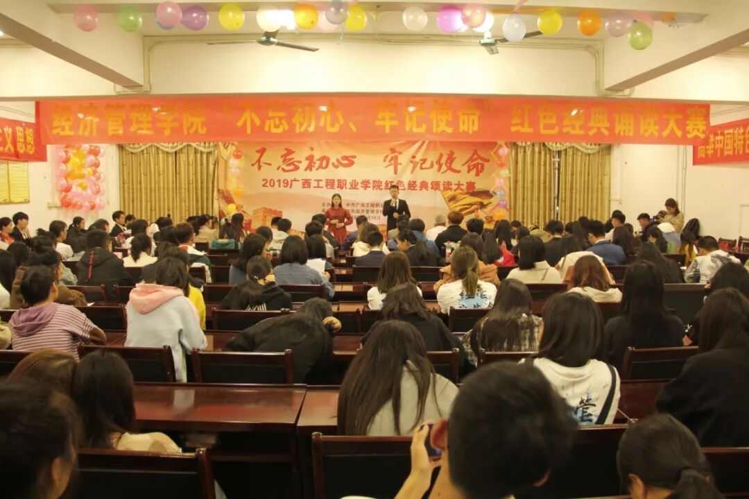 11月18日晚,廣西工程職業(yè)學(xué)院2019年“不忘初心、牢記使命”紅色經(jīng)典誦讀大賽決賽在辦公樓第一會(huì)議室舉行。擔(dān)任本次大賽的評委是校黨委書記方仕英、副書記滕色鮮,黨委辦公室科長黃香琴、韋金松老師,經(jīng)濟(jì)管理學(xué)院黨支部書記黃金俊、材料與機(jī)電工程學(xué)院黨支部書記謝安妮、土木工程學(xué)院第一黨支部書記彭家官、土木工程學(xué)院第二黨支部書記陳春任、鐵道與航空管理學(xué)院黨支部陳國昇老師。校學(xué)生會(huì)、學(xué)生社團(tuán)代表和各二級學(xué)院學(xué)生代表到現(xiàn)場觀摩了本次大賽。