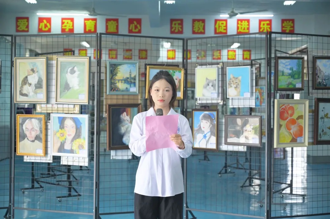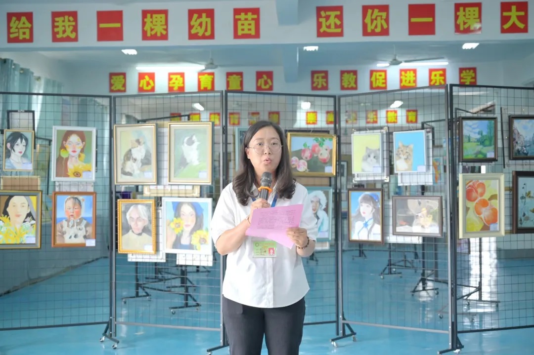 胡星萍院長向為籌備此次展覽付出辛勤努力的全體師生致以最誠摯的感謝。她表示,藝術教育的意義,不僅在于掌握技法,更在于通過藝術感知世界和傳遞情感。此次展覽以“墨韻傳薪火,以夢繪星河”為主題,既是對中華傳統(tǒng)藝術的致敬,也是同學們用畫筆描繪夢想的生動實踐。借此機會,她對同學們提出幾點期望:一是堅守藝術初心、二是勇于突破創(chuàng)新、三是踐行美育使命。