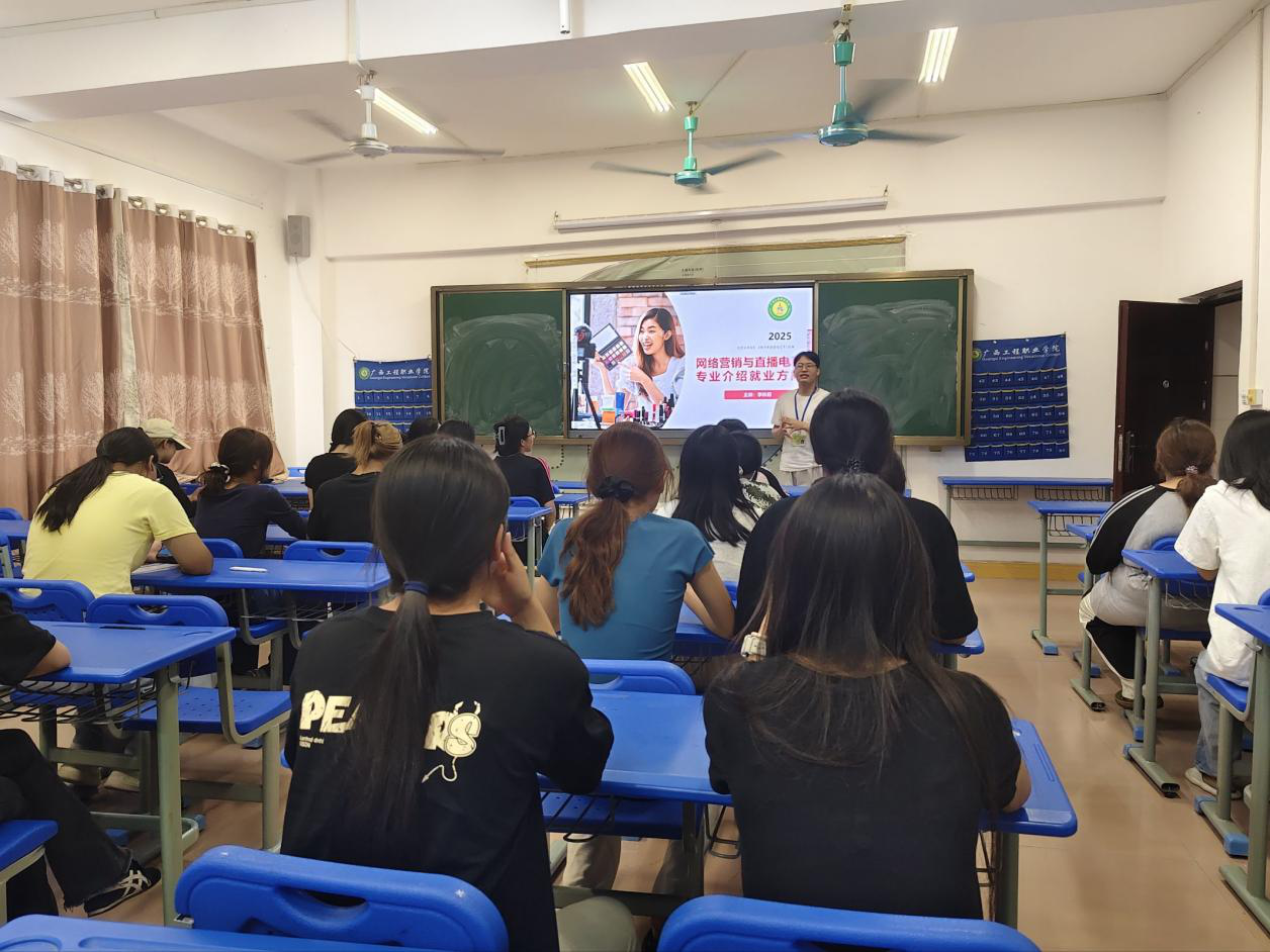 圖為學(xué)院教師李林蔚對(duì)2025級(jí)網(wǎng)絡(luò)營(yíng)銷與直播電商專業(yè)學(xué)生進(jìn)行專業(yè)介紹