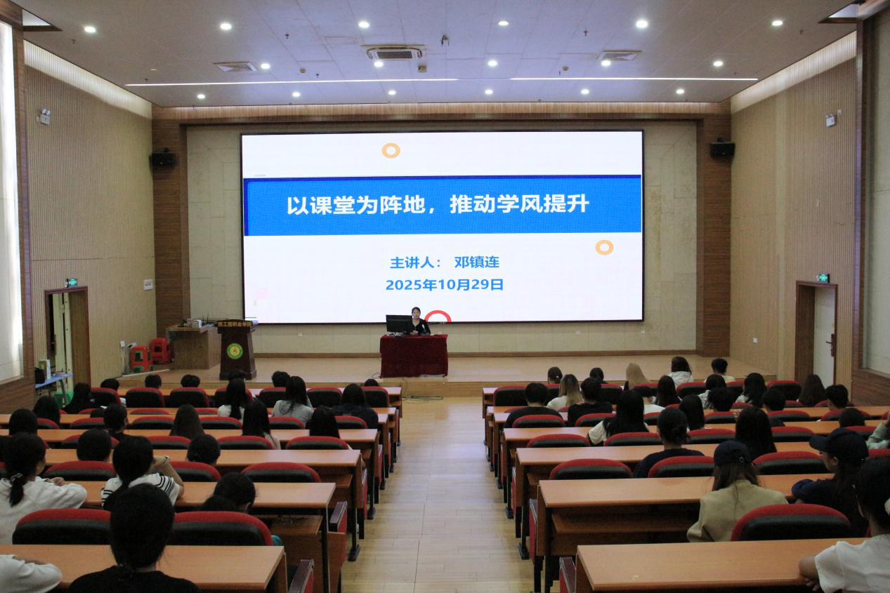 10月29日,學(xué)院辦公室主任鄧鎮(zhèn)連圍繞“以課堂為陣地,推動(dòng)學(xué)風(fēng)提升”為主題開展教育教學(xué)管理專題培訓(xùn),從課程考核、學(xué)籍管理、實(shí)踐教學(xué)等方面對(duì)學(xué)校教學(xué)管理制度進(jìn)行了細(xì)致解讀,幫助新生盡快適應(yīng)大學(xué)學(xué)習(xí)節(jié)奏,規(guī)范學(xué)習(xí)行為。鄧主任在培訓(xùn)中還重點(diǎn)解讀了學(xué)分制度與重修政策,強(qiáng)調(diào)新生需嚴(yán)格遵守考勤紀(jì)律,積極參與課堂互動(dòng),培養(yǎng)自主學(xué)習(xí)習(xí)慣;她結(jié)合實(shí)例分析了學(xué)業(yè)預(yù)警機(jī)制,提醒新生及時(shí)規(guī)劃學(xué)習(xí)進(jìn)度,避免因拖延影響畢業(yè)進(jìn)程,并通過問答環(huán)節(jié)解答了學(xué)分轉(zhuǎn)換、選課流程等常見疑問,幫助新生建立清晰的學(xué)習(xí)目標(biāo)與責(zé)任意識(shí)。