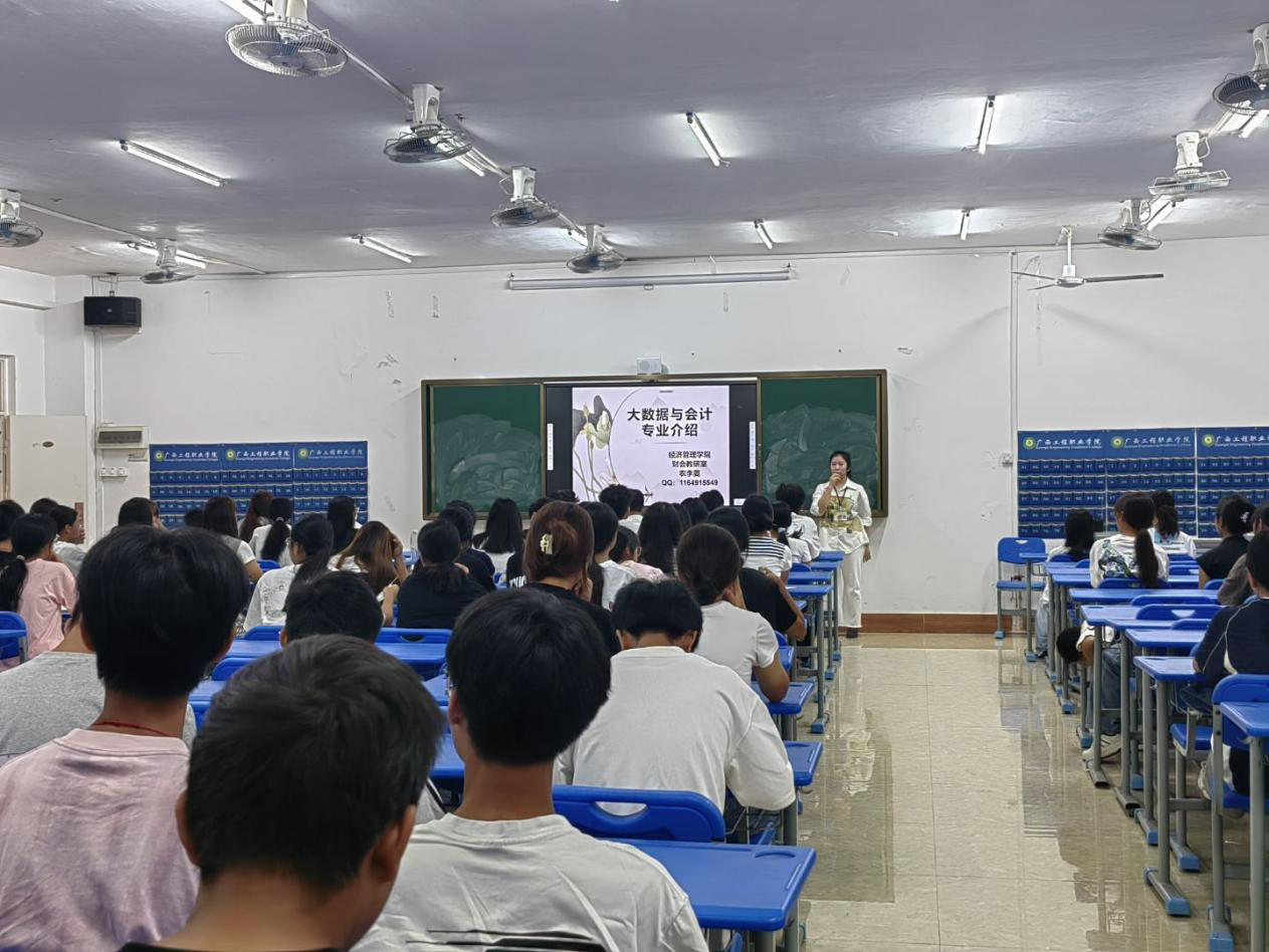 圖為學(xué)院教師農(nóng)李菱對(duì)2025級(jí)大數(shù)據(jù)與會(huì)計(jì)專業(yè)學(xué)生進(jìn)行專業(yè)介紹