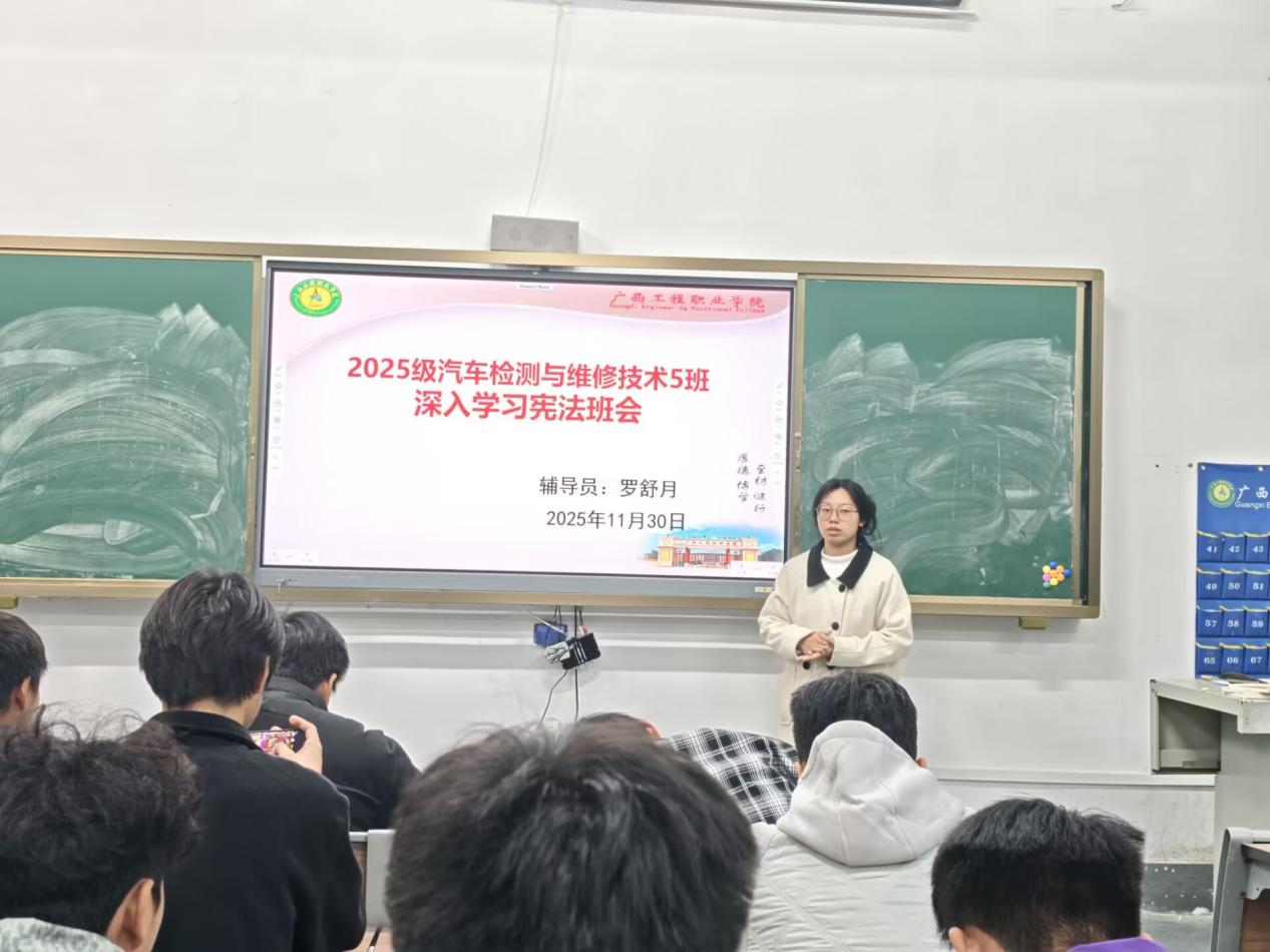 為深入學(xué)習(xí)法治思想,筑牢青年學(xué)子法治根基,在第十二個(gè)“國(guó)家憲法日”來(lái)臨之際,汽車與機(jī)電學(xué)院于2025年11月30日,組織全院各班級(jí)成功舉辦了以“學(xué)法知法守法”為主題的憲法學(xué)習(xí)宣傳周系列活動(dòng)。本次活動(dòng)覆蓋面廣、形式新穎、內(nèi)涵深刻,在學(xué)院內(nèi)掀起了學(xué)習(xí)憲法、尊崇憲法的熱潮。