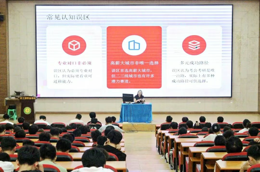 黨支部書(shū)記、副院長(zhǎng)廖嬌作《樹(shù)立科學(xué)的就業(yè)與擇業(yè)觀》專題培訓(xùn),她通過(guò)生動(dòng)的案例和詳實(shí)的數(shù)據(jù),分析了當(dāng)前就業(yè)形勢(shì)和行業(yè)需求,引導(dǎo)學(xué)生們根據(jù)自身興趣、能力和市場(chǎng)需求進(jìn)行合理定位。