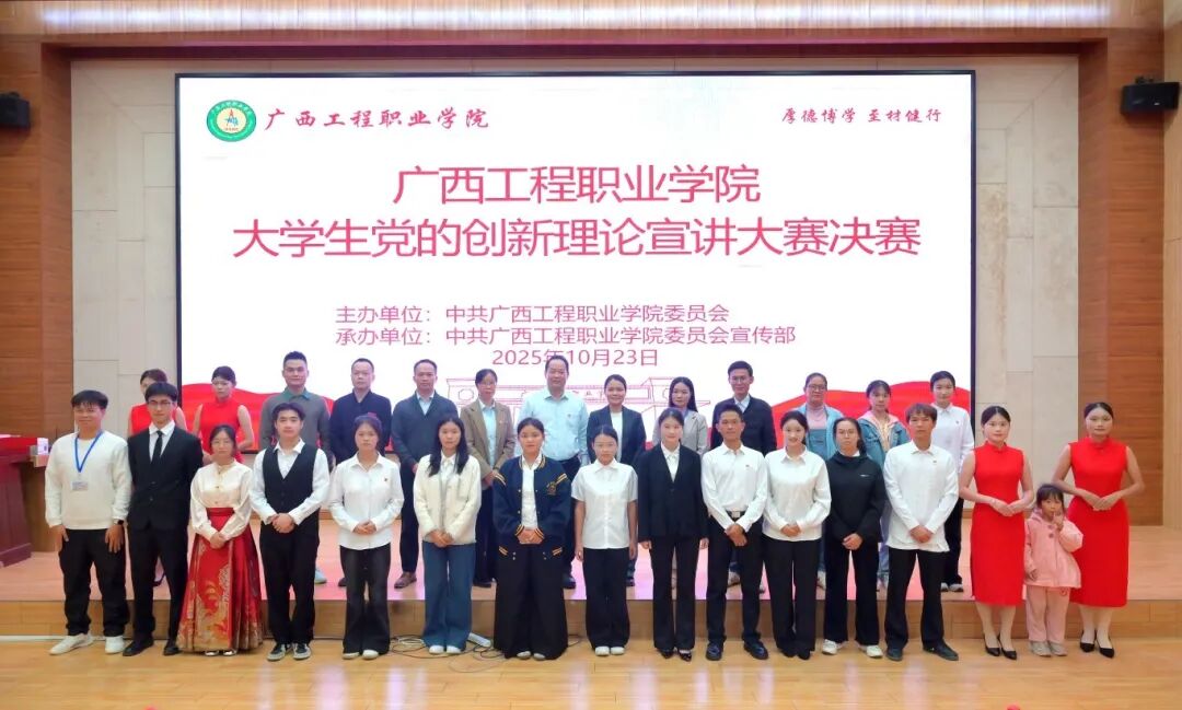 為進一步推動學習宣傳貫徹習近平新時代中國特色社會主義思想走深走實走心,增進我校學生對黨的創(chuàng)新理論的政治認同、思想認同、理論認同、情感認同,10月23日晚,廣西工程職業(yè)學院大學生黨的創(chuàng)新理論宣講大賽決賽在圖文信息大樓一樓學術報告廳舉行。學校黨委書記、政府督導專員蒙本曼出席現場,黨委辦公室、黨委宣傳部、各黨組織書記(副書記)及二級學院師生代表400多人到場觀賽。