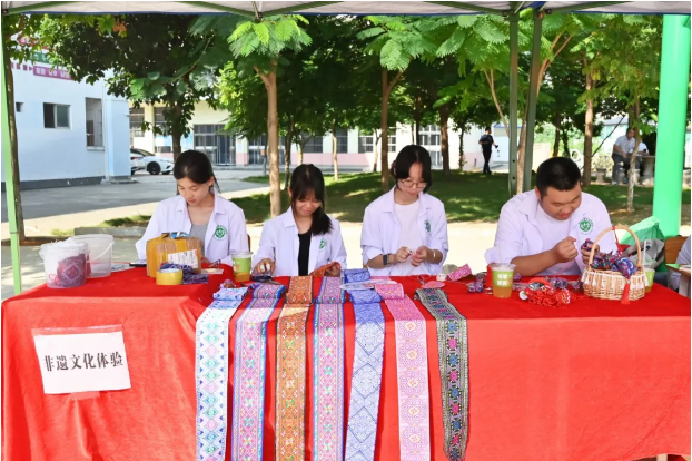 非遺文化體驗(yàn)展區(qū)展示學(xué)生手工創(chuàng)作的非遺傳承作品,涵蓋精致的傳統(tǒng)刺繡、非遺主題手作、傳統(tǒng)技藝衍生品等純手工制品,盡顯傳統(tǒng)工藝的匠心與溫度?,F(xiàn)場除陳列這些特色非遺作品外,更精心設(shè)置了多個趣味互動環(huán)節(jié),讓觀眾在觀賞之余能深度感受非遺魅力。