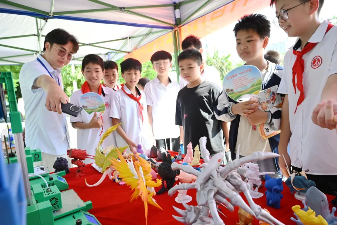 3D打印展區(qū)宛如一座 “科技魔法工坊”,特別為小學(xué)生群體設(shè)計(jì)了趣味十足的互動體驗(yàn)環(huán)節(jié)?,F(xiàn)場不僅陳列著孩子們熟悉的各類小物件——如3D打印制成的卡通玩偶、迷你文具、小動物模型等,專業(yè)教師與學(xué)生志愿者還會手把手帶領(lǐng)大家 “探秘”3D打印的原理與過程,讓科技體驗(yàn)更具參與感。