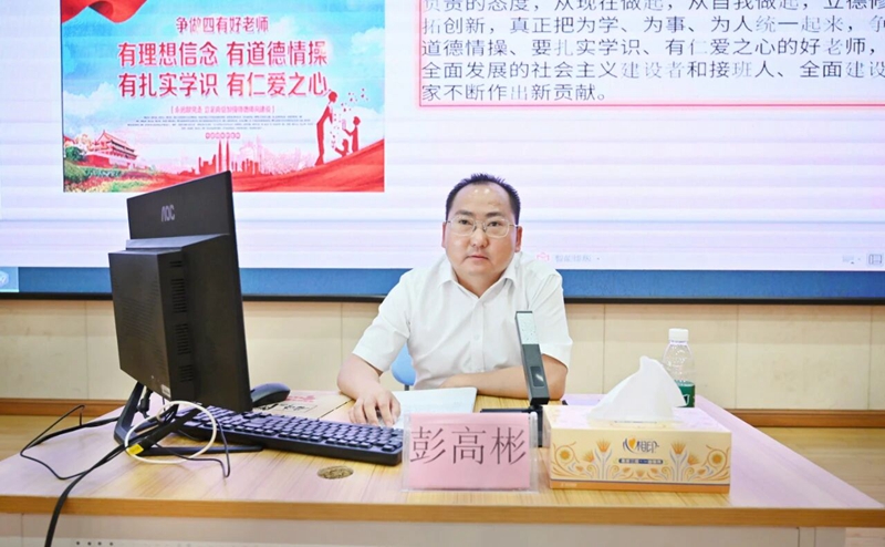 圖為紀委書記、副校長彭高彬作《師德師風第一課——清風正氣育新人?廉潔從教守初心》專題培訓