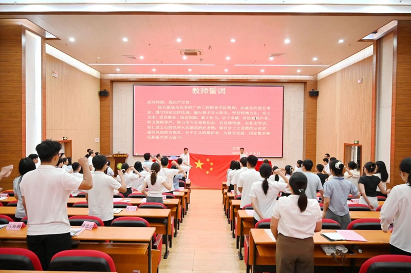 黨委副書記、校長羅艷妮圍繞《師德師風第一課——立德樹人,匠心筑夢》主題,介紹學校 “工科筑基、服務產業(yè)、文化鑄魂” 的辦學核心,解讀 “四有” 好老師標準與教育家精神,明確行政人員、專任教師、輔導員的師德踐行路徑,鼓勵新教師實現從 “職業(yè)新人” 到 “職教實踐者” 的轉變,以專業(yè)能力助學生掌握技能,以師德底色幫學生樹立準則。