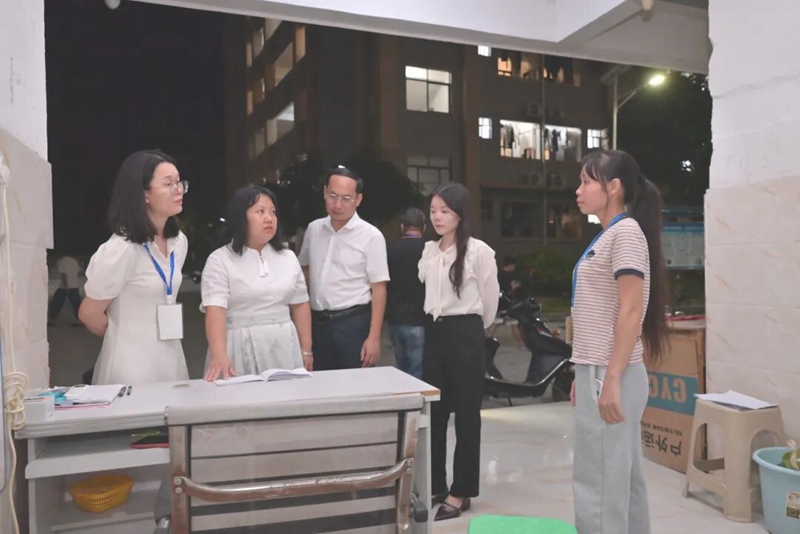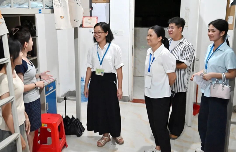 為深入貫徹落實立德樹人根本任務,及時掌握2025級新生入學適應狀況,傳遞學校關懷與溫暖,助力新生順利融入大學生活,9月14日晚,黨委副書記、校長羅艷妮,黨委副書記黃秋霞,副校長黃德偉、蔣茂麗,校長助理梁善雅等校級領導分別帶隊,組織學生工作處以及二級學院領導班子深入2025級新生宿舍開展走訪慰問,與剛入校的同學親切交流,為學子們送上“開學第一份溫暖”。