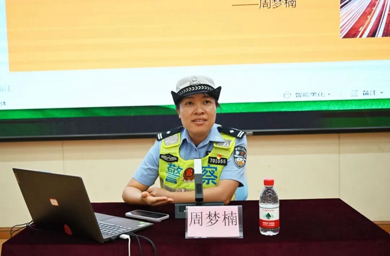 圖為交警大隊(duì)教導(dǎo)員周夢(mèng)楠警官作專題講座