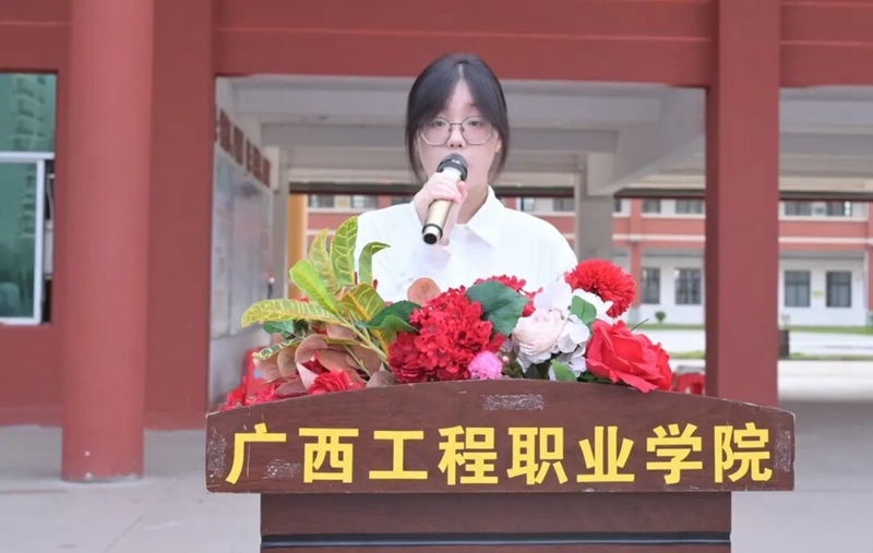 圖為2025級學(xué)生代表李群凰同學(xué)發(fā)言