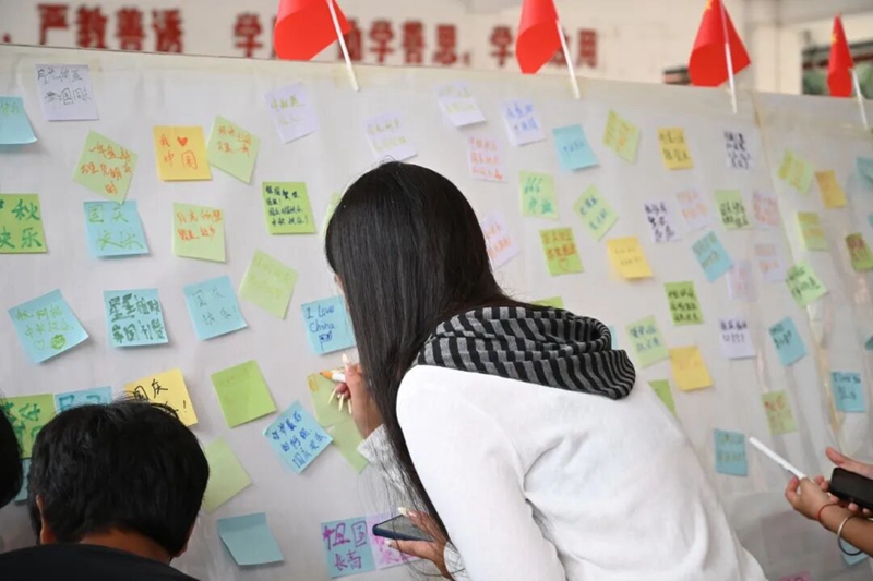 雙節(jié)同慶,情滿校園。為弘揚(yáng)中華優(yōu)秀傳統(tǒng)文化,厚植師生家國情懷,在中秋、國慶雙節(jié)來臨之際,學(xué)校在校園廣場開展便簽寄語活動,吸引眾多學(xué)子駐足參與。