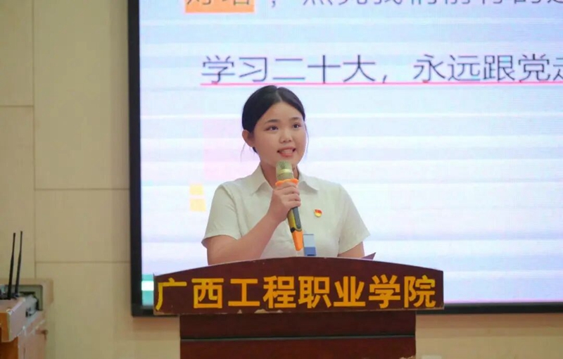 圖為韋麗欣宣講主題為《以青春之聲,傳時(shí)代新聲》