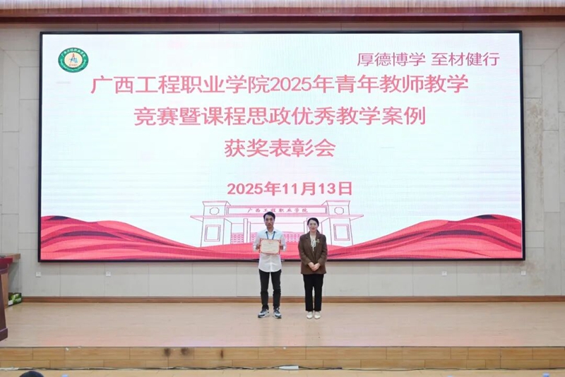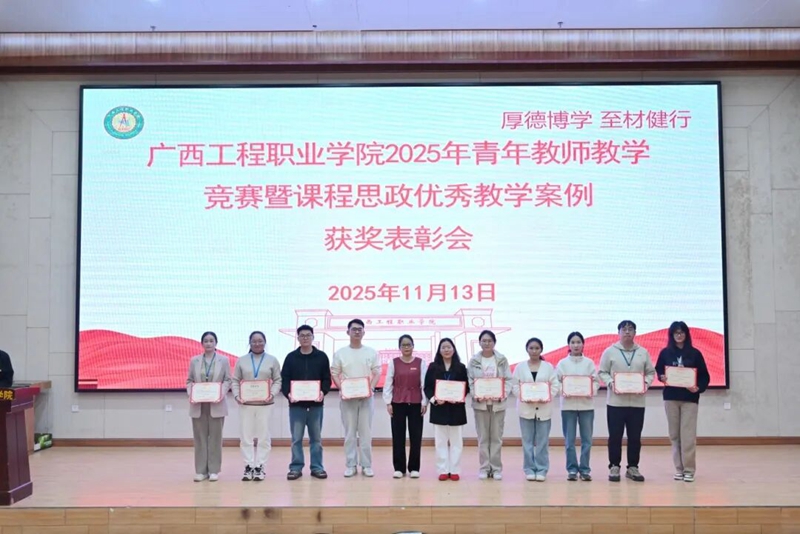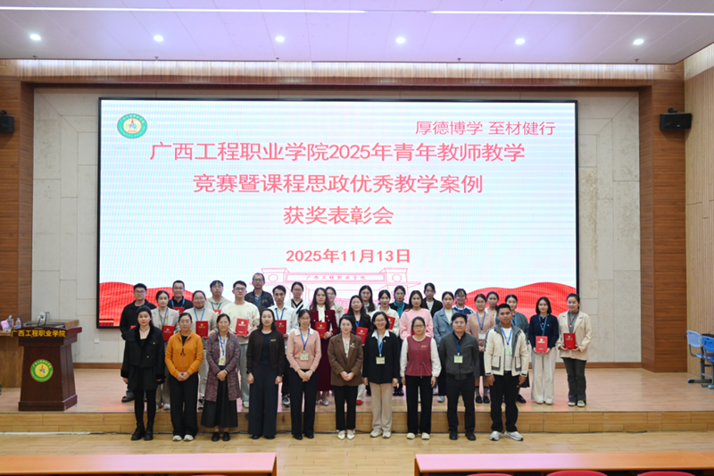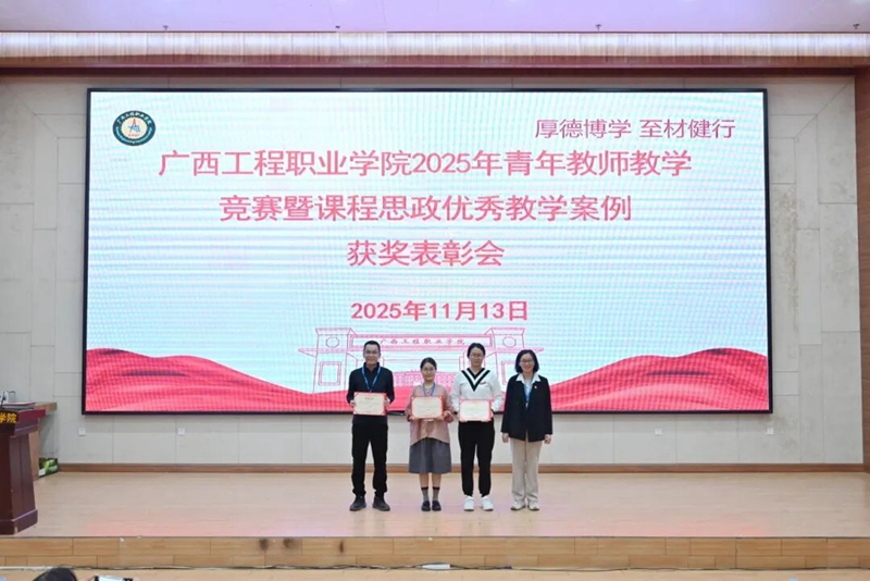 為深入落實(shí)立德樹人根本任務(wù),持續(xù)推進(jìn)課程思政建設(shè)走深走實(shí),全面提升青年教師教學(xué)能力與育人水平,表彰先進(jìn)典型、凝聚奮進(jìn)力量,11 月 13 日下午,廣西工程職業(yè)學(xué)院 2025 年青年教師教學(xué)競(jìng)賽暨課程思政優(yōu)秀教學(xué)案例評(píng)選獲獎(jiǎng)表彰會(huì)在圖文信息中心一樓學(xué)術(shù)報(bào)告廳舉行。學(xué)校黨委副書記黃秋霞、教務(wù)處處長(zhǎng)黃香琴、經(jīng)濟(jì)管理學(xué)院院長(zhǎng)覃清香、藝術(shù)設(shè)計(jì)學(xué)院院長(zhǎng)覃鳳姣、教育學(xué)院院長(zhǎng)胡星萍、汽車與機(jī)電學(xué)院院長(zhǎng)楊竟、馬克思主義學(xué)院副院長(zhǎng)李麗詩(shī)、鐵道與航空學(xué)院副院長(zhǎng)廖嬌、土木工程學(xué)院副院長(zhǎng)陳春任出席大會(huì),全體任課教師參加會(huì)議。表彰會(huì)由教務(wù)處科長(zhǎng)覃海梅主持。