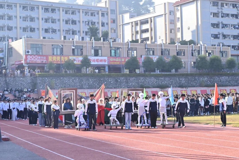 她們手捧鮮花,步履輕快,洋溢著青春朝氣,展現(xiàn)著全校學(xué)子的蓬勃風(fēng)采。