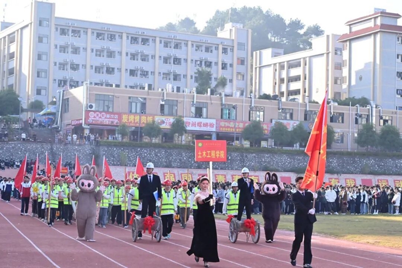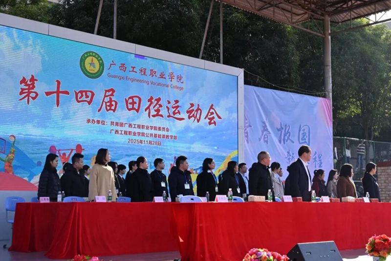 2025 年 11 月 28 日,以 “強(qiáng)體礪能筑匠心·青春報(bào)國(guó)新征程” 為主題的廣西工程職業(yè)學(xué)院第十四屆田徑運(yùn)動(dòng)會(huì),在學(xué)校運(yùn)動(dòng)場(chǎng)隆重拉開帷幕。學(xué)校黨政領(lǐng)導(dǎo)班子成員、中層管理干部及各部門負(fù)責(zé)人出席開幕式現(xiàn)場(chǎng),全體教職工與各二級(jí)學(xué)院學(xué)生代表齊聚賽場(chǎng),共同見證這一燃情時(shí)刻。開幕式由學(xué)校黨委副書記黃秋霞主持。