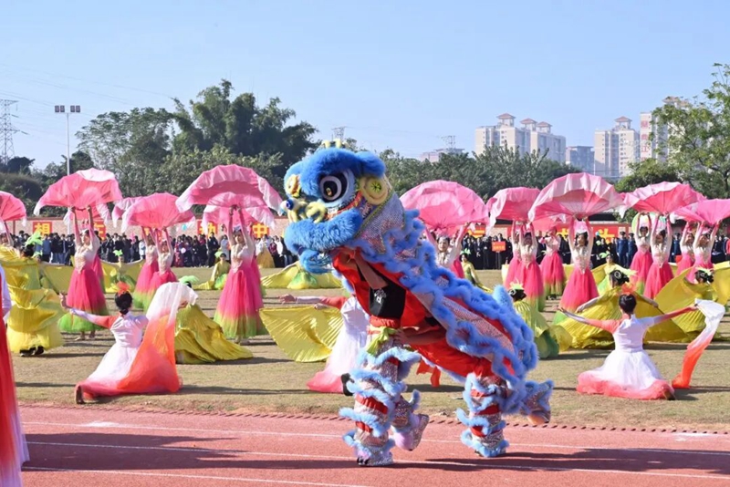圖為開場(chǎng):龍獅表演
