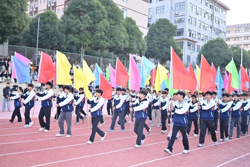 彩旗迎風(fēng)飄揚(yáng),紅色代表熱忱,藍(lán)色象征坦蕩,黃色寓意希望,綠色展現(xiàn)生機(jī),橙色點(diǎn)燃奮進(jìn)。這是校園風(fēng)貌的生動(dòng)寫照,凝聚著全校師生的同心與朝氣。