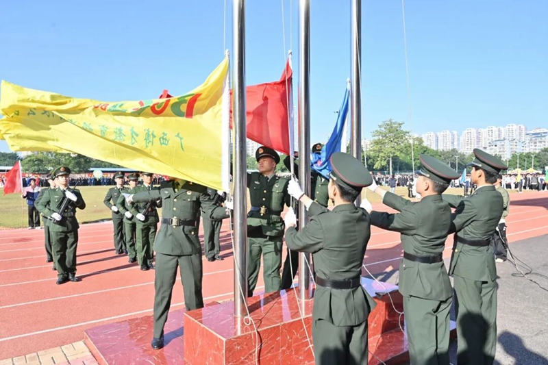 他們?nèi)缫苿?dòng)長(zhǎng)城般威嚴(yán),護(hù)衛(wèi)著莊嚴(yán)的五星紅旗,意氣風(fēng)發(fā)盡顯青年昂揚(yáng)風(fēng)貌。國(guó)旗飄揚(yáng),承載榮耀與信念,激勵(lì)健兒奮勇拼搏、勇爭(zhēng)排頭!