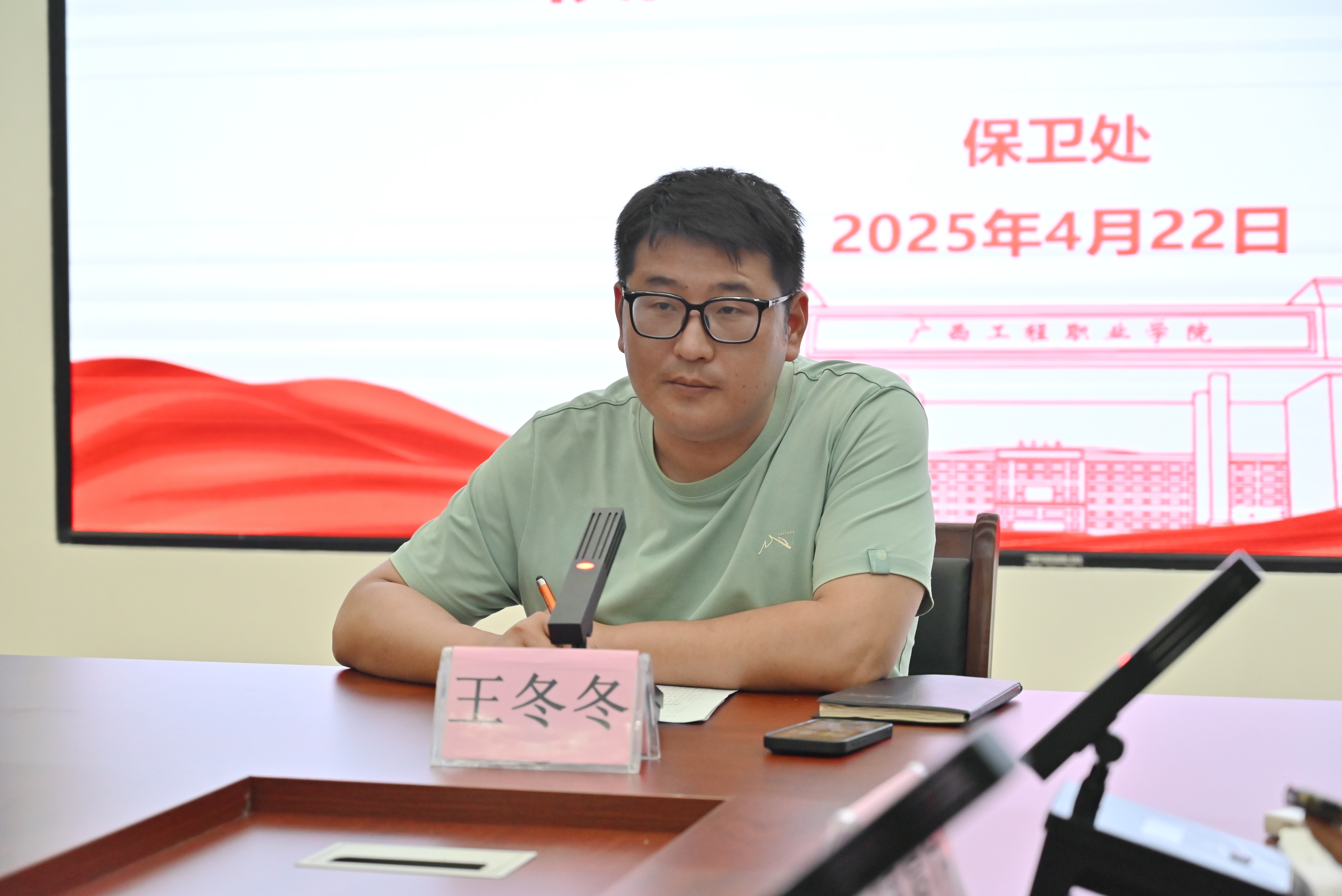 2025年4月22日,為全面落實(shí)上級部門關(guān)于校園安全穩(wěn)定工作部署,進(jìn)一步壓實(shí)安全責(zé)任、筑牢風(fēng)險防線,我校于4月22日下午在圖書館一樓大數(shù)據(jù)中心開展了2025年校園安全穩(wěn)定工作專題會議。副校長黃德韋、校長助理梁善雅出席會議并作工作部署,保衛(wèi)處處長王冬冬及各二級單位負(fù)責(zé)人、輔導(dǎo)員代表等余人參會。會議由保衛(wèi)處副處長王冬冬主持。