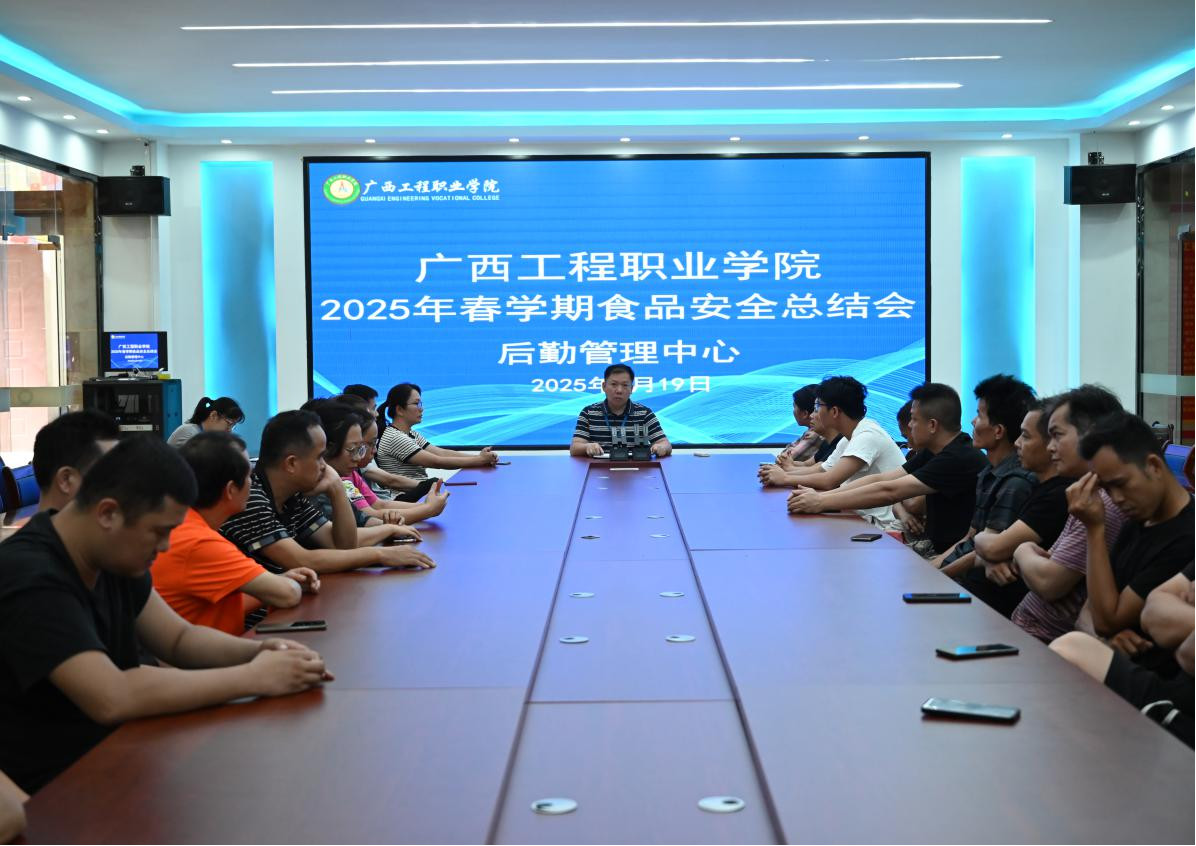 2025年6月19日,后勤管理中心在圖書館大數(shù)據(jù)中心召開2025年春學(xué)期食品安全總結(jié)會(huì),劉兆兵主任主持,膳食科科長(zhǎng)黃桂芬及各餐飲單位負(fù)責(zé)人參會(huì)。