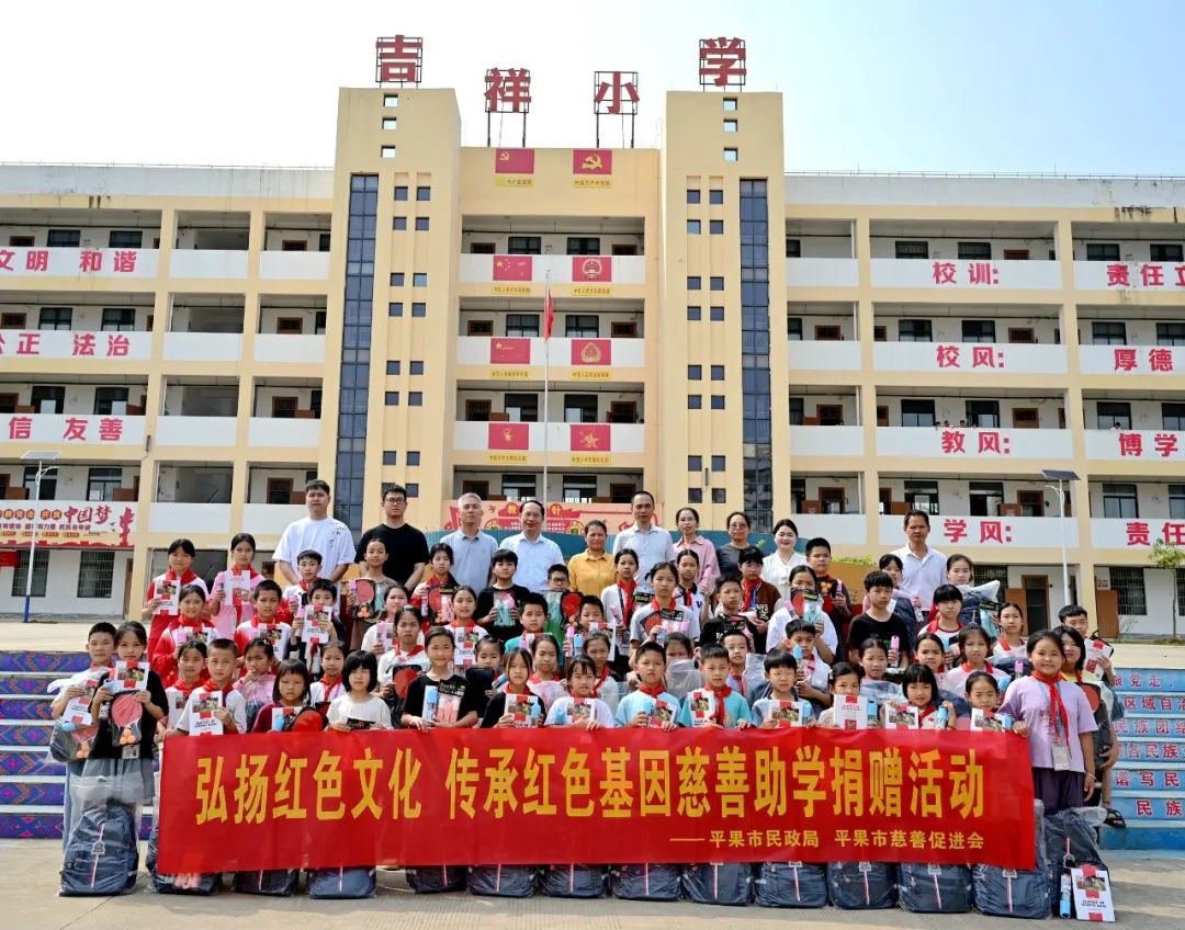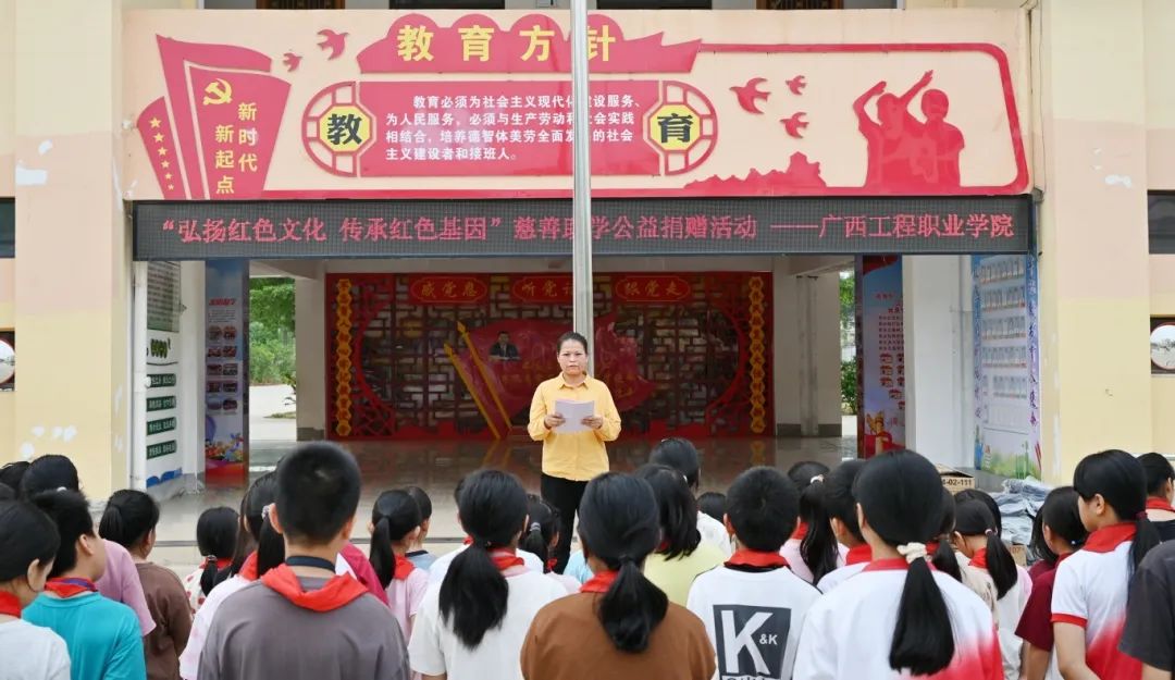 為弘揚(yáng)紅色精神,踐行公益使命,助力教育事業(yè)發(fā)展,2025年4月29日,廣西工程職業(yè)學(xué)院赴平果市吉祥小學(xué)開展“弘揚(yáng)紅色文化 傳承紅色基因”慈善助學(xué)捐贈活動,捐贈圖書及學(xué)習(xí)用品等,為孩子們送去了學(xué)習(xí)物資與關(guān)懷,希望孩子們通過紅色文化的浸潤,博覽群書,增長知識面,奮發(fā)向上,實(shí)現(xiàn)人生夢想?;顒佑善焦忻裾峙c平果市慈善促進(jìn)會主辦。我校副校長黃德偉、團(tuán)委副書記李麗清及教師代表參加了捐贈活動