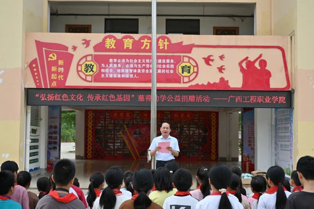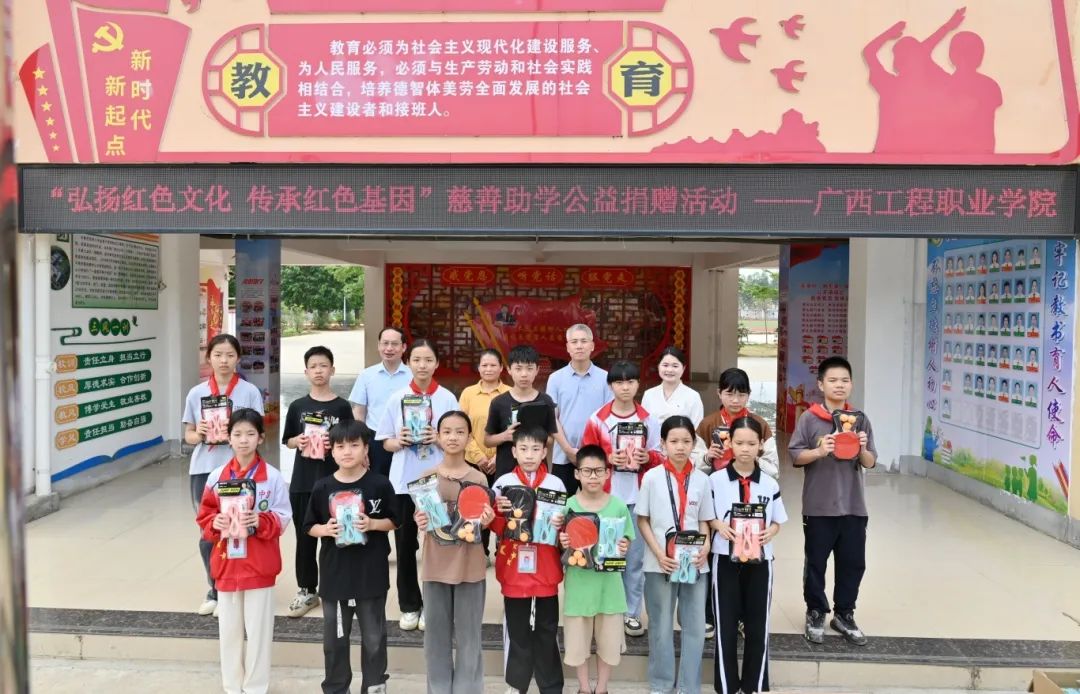 紅色精神照亮成長路,公益善舉溫暖學(xué)子心。此次捐贈活動不僅是一次愛心的傳遞,是一次精神的洗禮,更是對教育事業(yè)的支持。廣西工程職業(yè)學(xué)院以實(shí)際行動弘揚(yáng)了紅色革命精神,踐行了社會責(zé)任感和擔(dān)當(dāng),為地方教育事業(yè)注入了新的活力,激勵廣大青少年賡續(xù)紅色血脈,勤奮學(xué)習(xí),努力成長為擔(dān)當(dāng)民族復(fù)興大任的時代新人。