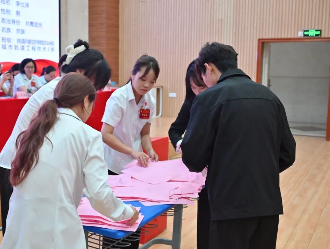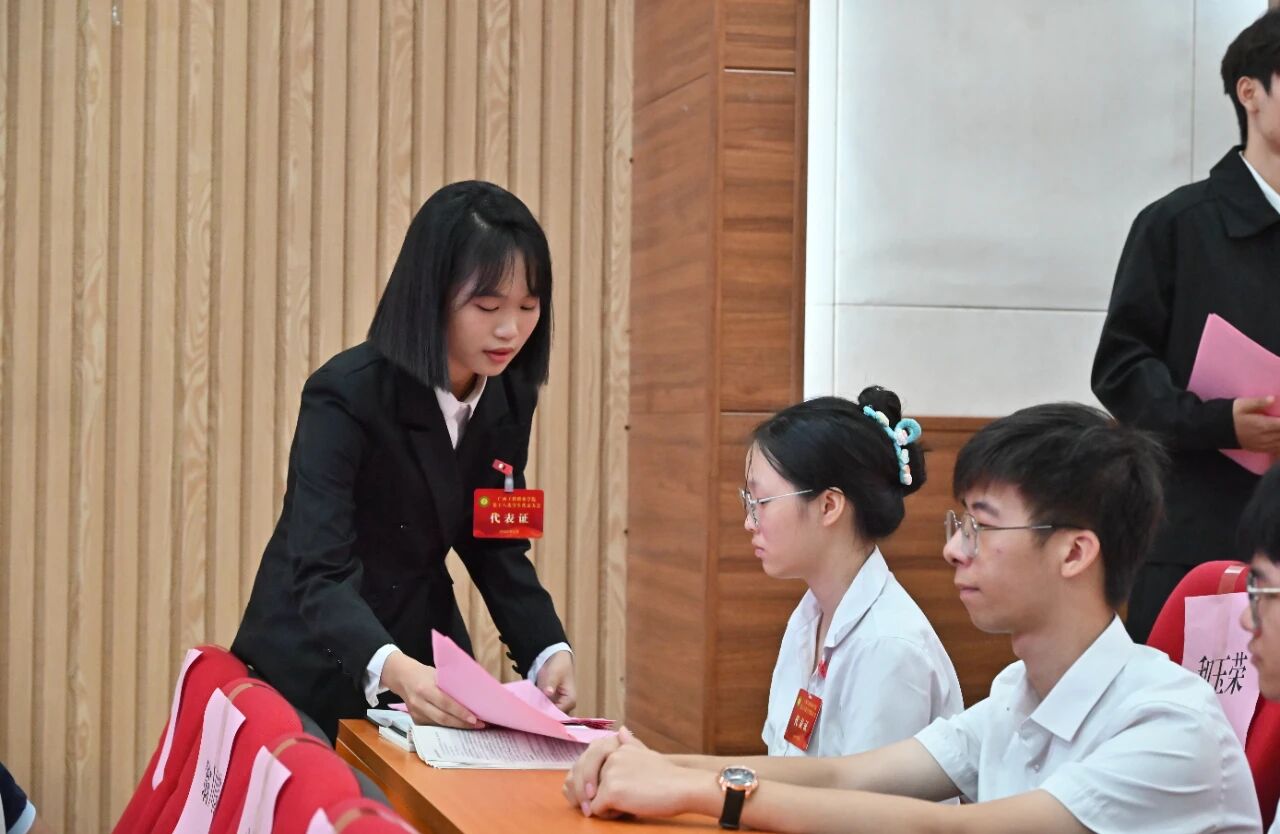 會(huì)上,各學(xué)生代表認(rèn)真聽取楊嘉怡同學(xué)宣讀議程,并在大會(huì)上舉手表決通過了《廣西工程職業(yè)學(xué)院第十八次學(xué)生代表大會(huì)議程(草案)》,審議通過《廣西工程職業(yè)學(xué)院第十八次學(xué)生代表大會(huì)主席團(tuán)、執(zhí)行主席名單(草案)》等決議。