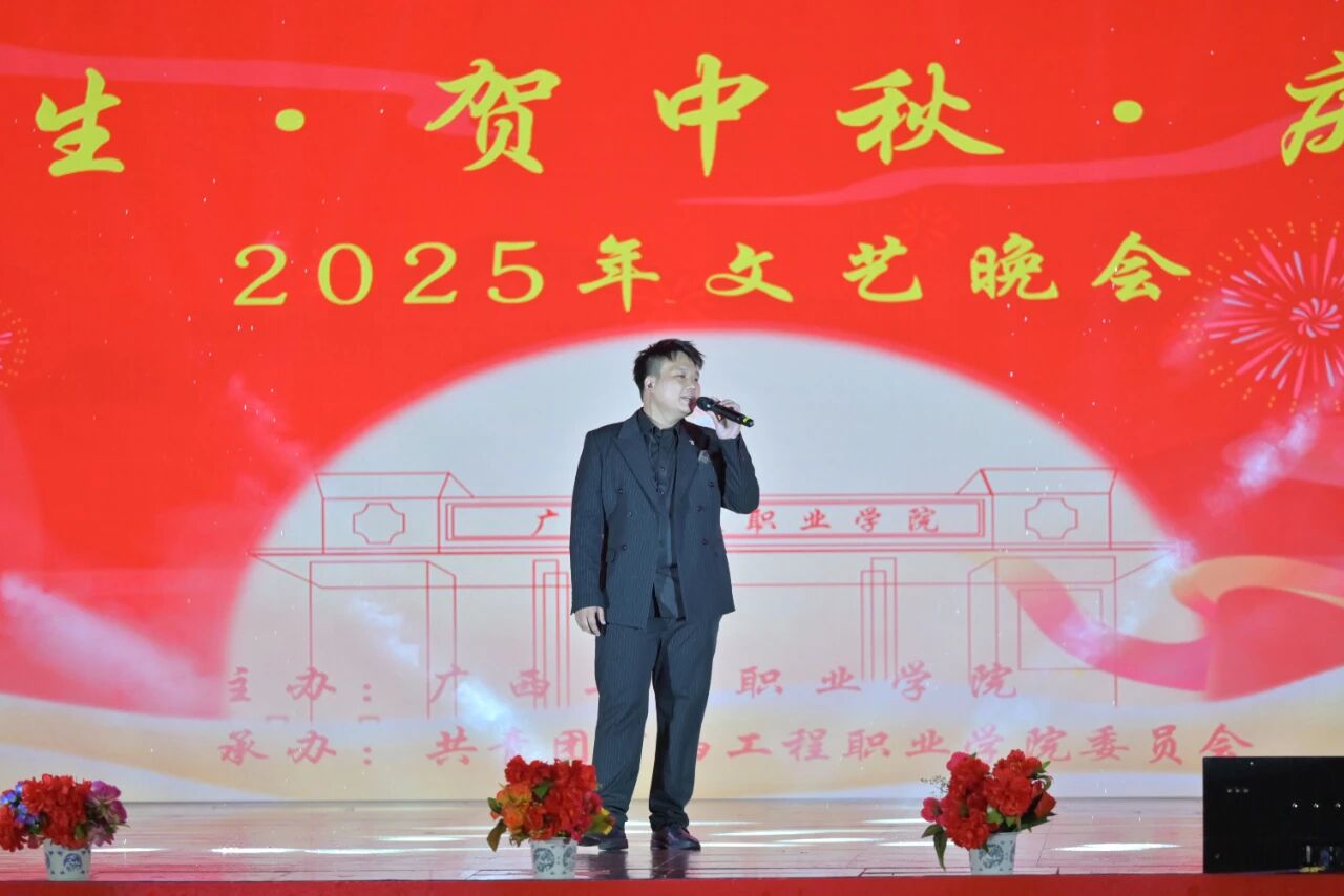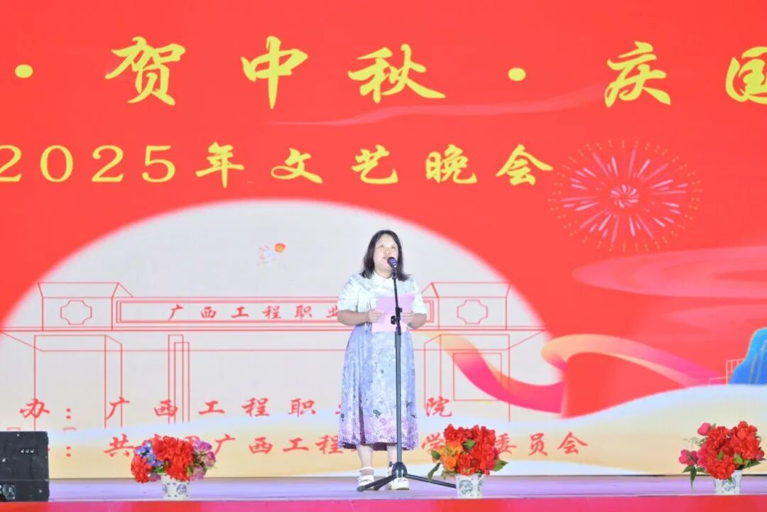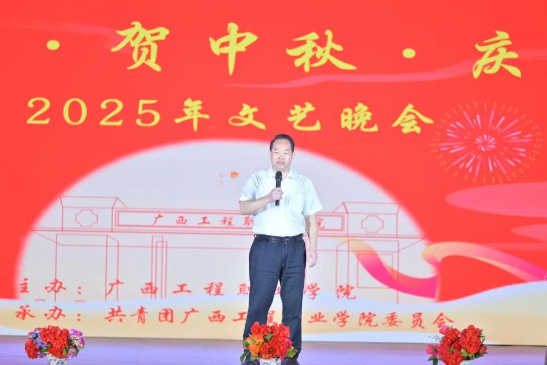 黨委書記、政府督導專員蒙本曼宣布2025 年廣西工程職業(yè)學院 “迎新生?賀中秋?慶國慶” 文藝晚會正式開始。