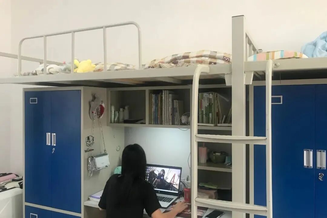 標(biāo)準(zhǔn)的六人間學(xué)生公寓,內(nèi)部設(shè)施完備(上床下桌的設(shè)計(jì)、獨(dú)立的衛(wèi)生間和洗漱間、寬敞的陽臺(tái)),配備了冷暖空調(diào)、全自動(dòng)洗衣機(jī)、電風(fēng)扇、熱水器以及寬帶網(wǎng)絡(luò)等現(xiàn)代化設(shè)備,為學(xué)生提供了一個(gè)舒適、便捷且充滿現(xiàn)代感的住宿居住條件。