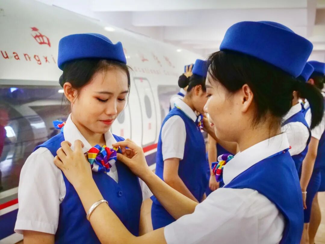 高速鐵路客運(yùn)乘務(wù)專業(yè)學(xué)生在柳鐵職院參加崗前培訓(xùn)并在柳州火車站實習(xí)