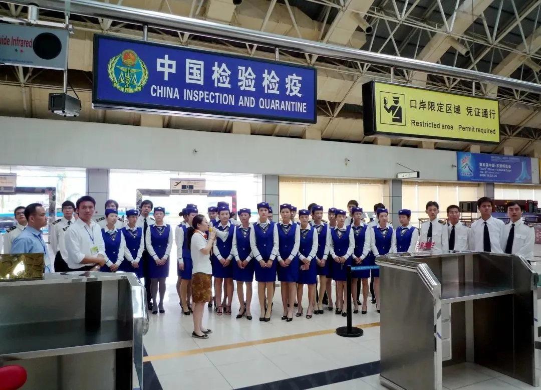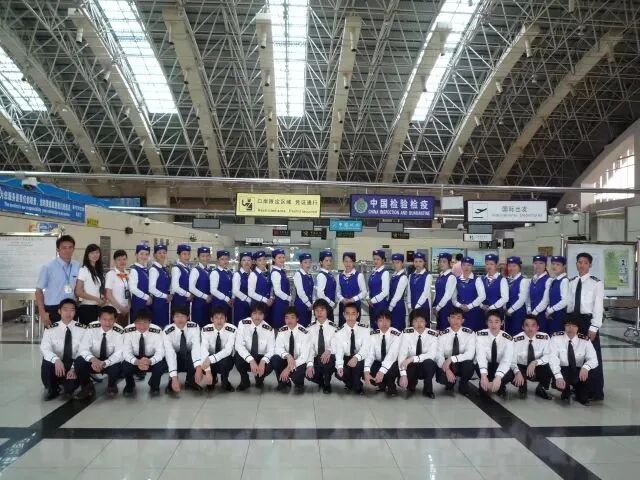 空中乘務(wù)專業(yè)學(xué)生在南寧吳圩國際機(jī)場見習(xí)