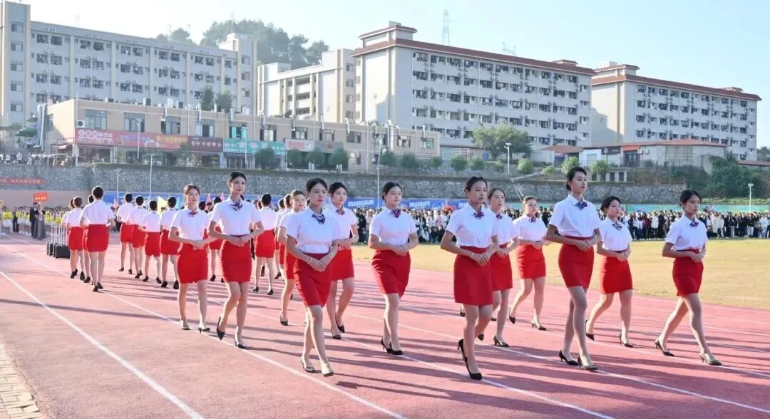 空中乘務(wù)專業(yè)學(xué)生在桂林兩江國際機(jī)場實習(xí)。