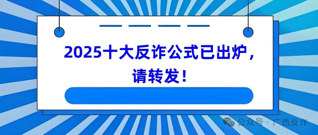 2025十大反詐公式已出爐,請轉(zhuǎn)發(fā)!