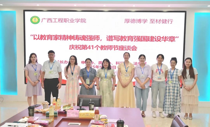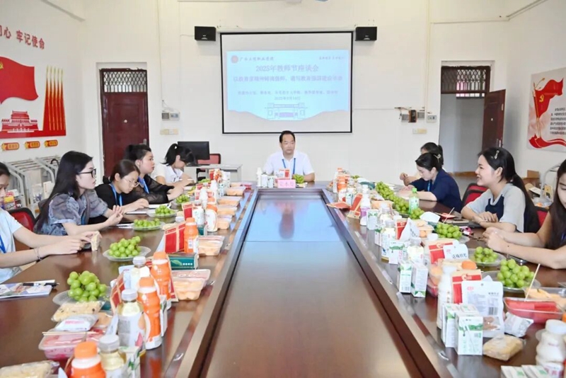學(xué)校黨委書記、政府督導(dǎo)專員蒙本曼,黨委副書記、校長羅艷妮,黨委副書記黃秋霞,紀(jì)委書記、副校長彭高彬,副校長黃德偉、蔣茂麗,校長助理李明澤、梁善雅等校領(lǐng)導(dǎo)分別組織相關(guān)部門召開主題為“以教育家精神鑄魂強師,譜寫教育強國建設(shè)華章”的教師節(jié)座談會。